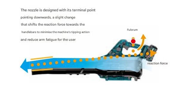 Laghdaigh tuirse oibriúcháin: Is iondúil go nglacann dearadh an fhuinnimh athmhuintearais prionsabail eirgeanamacha chun ualach matáin an oibreora a laghdú. Mar shampla, tá greim an ghunna spraeála deartha i gcruth eirgeanamaíochta chun tuirse láimhe a laghdú. Ag an am céanna, is féidir le coigeartú an phointe teirminéil den nozzle an fórsa imoibriúcháin a aistriú go dtí taobh an láimhsithe, rud a laghdóidh gníomh cúltaca an mheaisín agus tuirse lámh a laghdú.