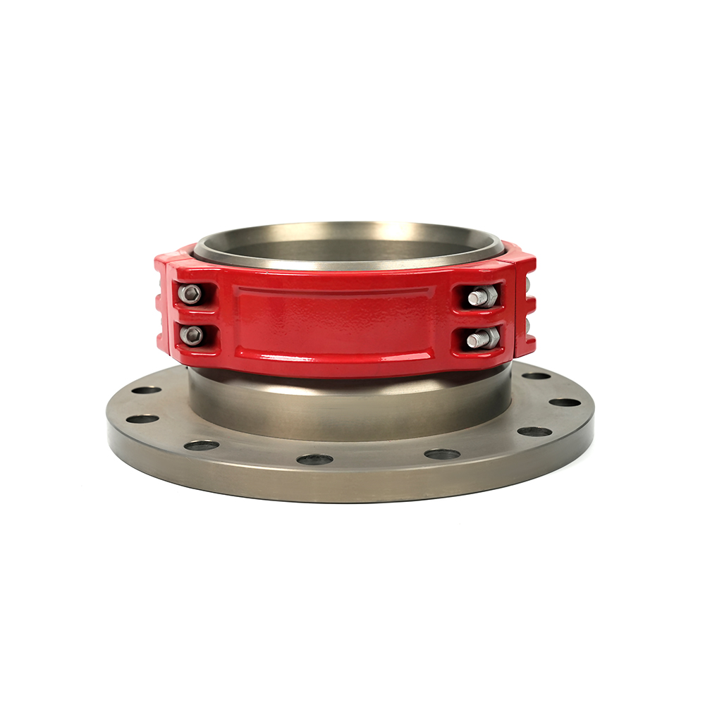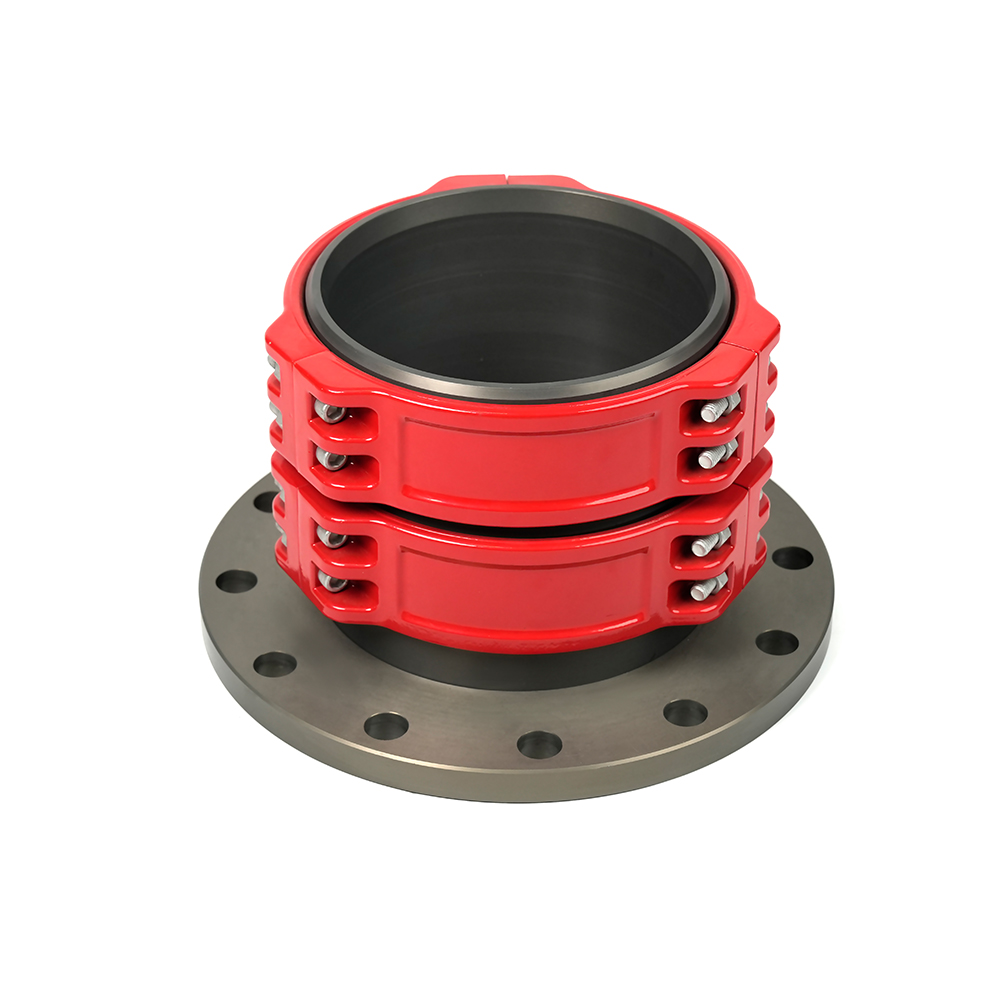 Is gléas píblíne comhraic dóiteáin é an cúpláil comhraic dóiteáin flanged a bhaineann le nasc dochta trí plátaí flange (fáinní miotail le poill bolt) agus bolt Fas10ing. Tá sé mar thréith ag séalaithe ardbhrú agus friotaíocht chreathaidh láidir, rud a chiallaíonn go bhfuil sé oiriúnach d'iarratais ar nós píblínte dóiteáin seasta agus cónascairí caidéil.