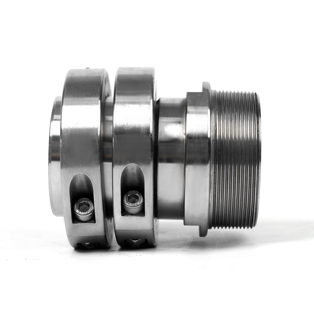 Nascann an cúpláil mianadóireachta snáithithe le píobán ar cheann amháin ag úsáid a clamp píobáin , cé go nascann an foirceann eile le trealamh mianach trí a meicníocht snáithithe. $ $