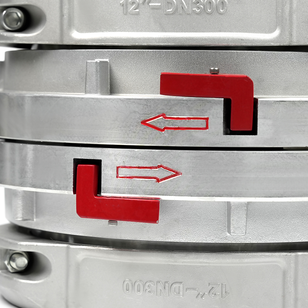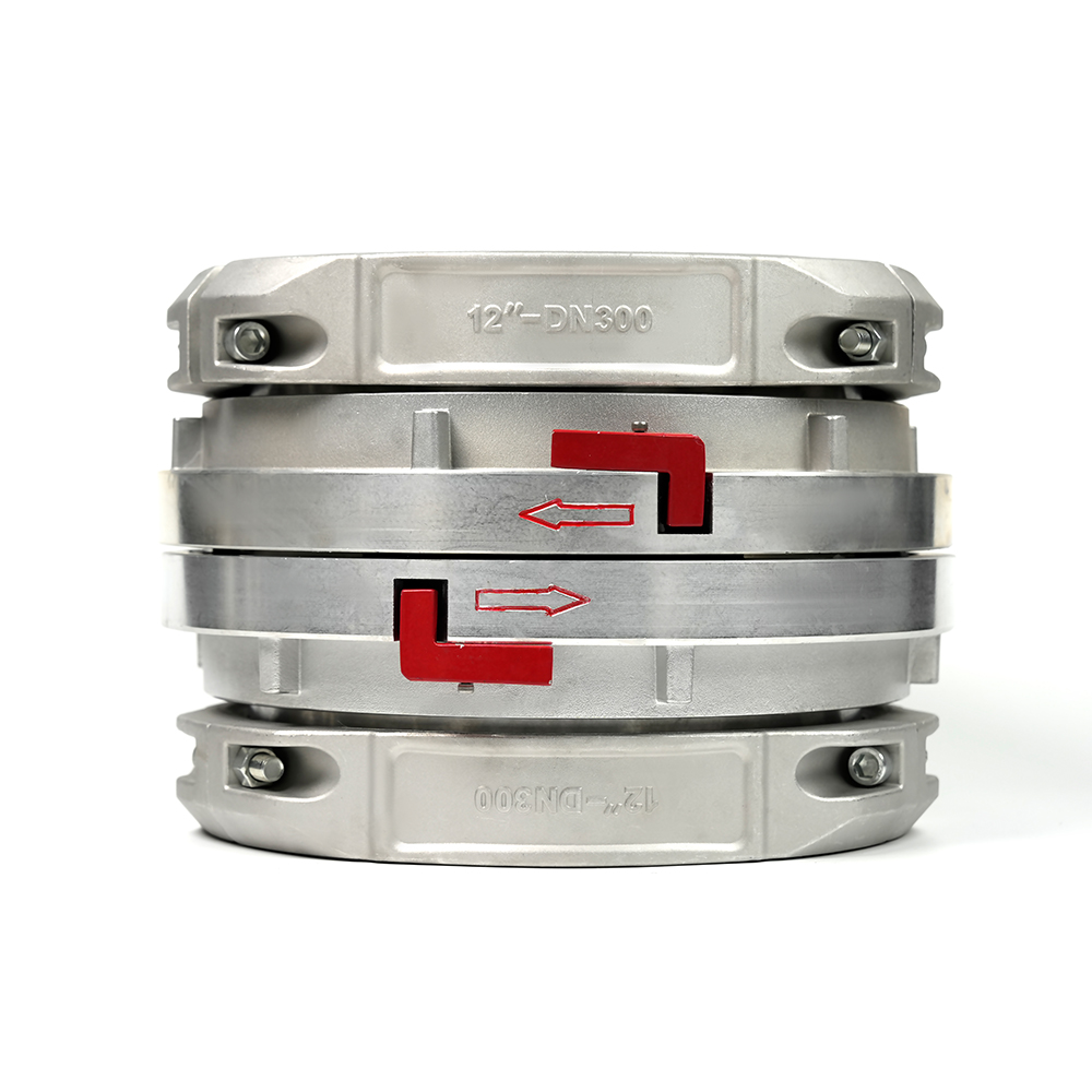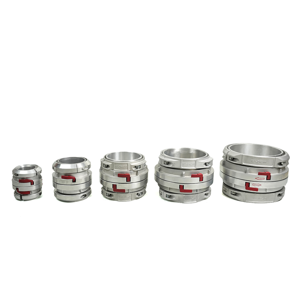 Glacann an cúpláil a Struchtúr sleeve dúbailte. Le linn cóimeála píobáin, cuirtear an píobán thar na píopaí uachtaracha agus íochtaracha agus tá sé daingnithe go daingean ag úsáid go daingean clampaí píobáin , nasc daingean agus iontaofa a chinntiú.